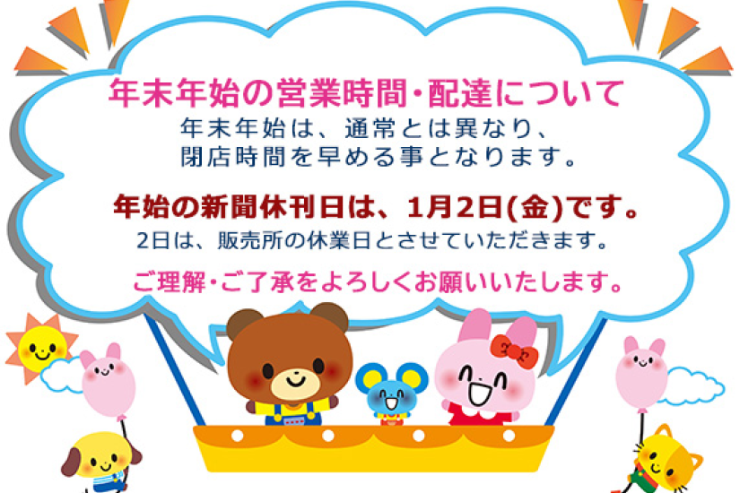年始の新聞休刊日は、1月2日(金)になります、2日(金)は、販売所…